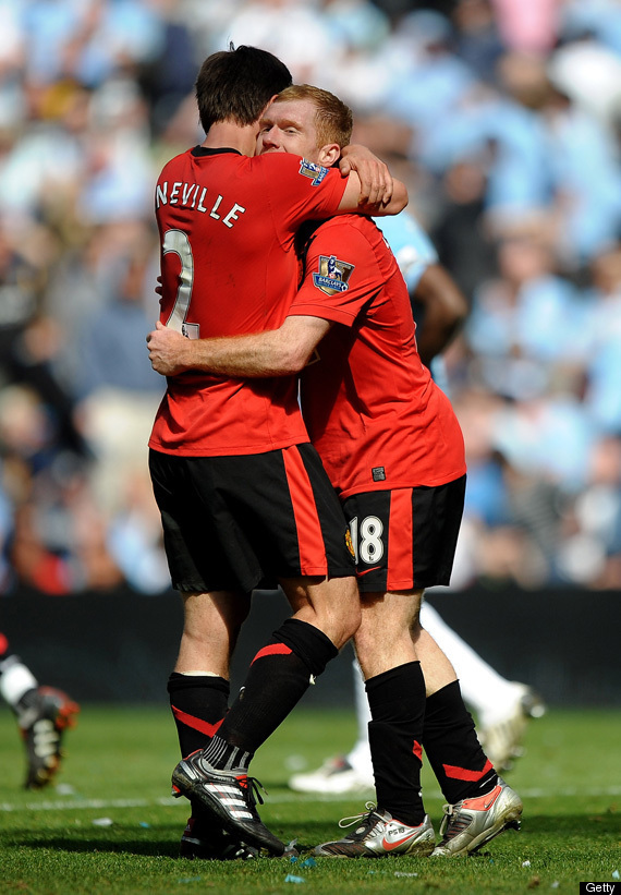 Гари Невилл отвечает поцелуем на гол Пола Скоулза