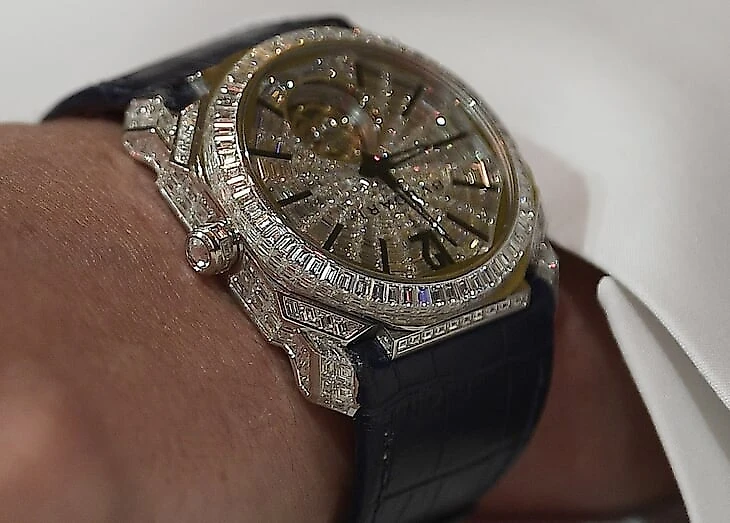 На следующий день он надел часы Bvlgari из 18-каратного золота, украшенные 270 бриллиантами.