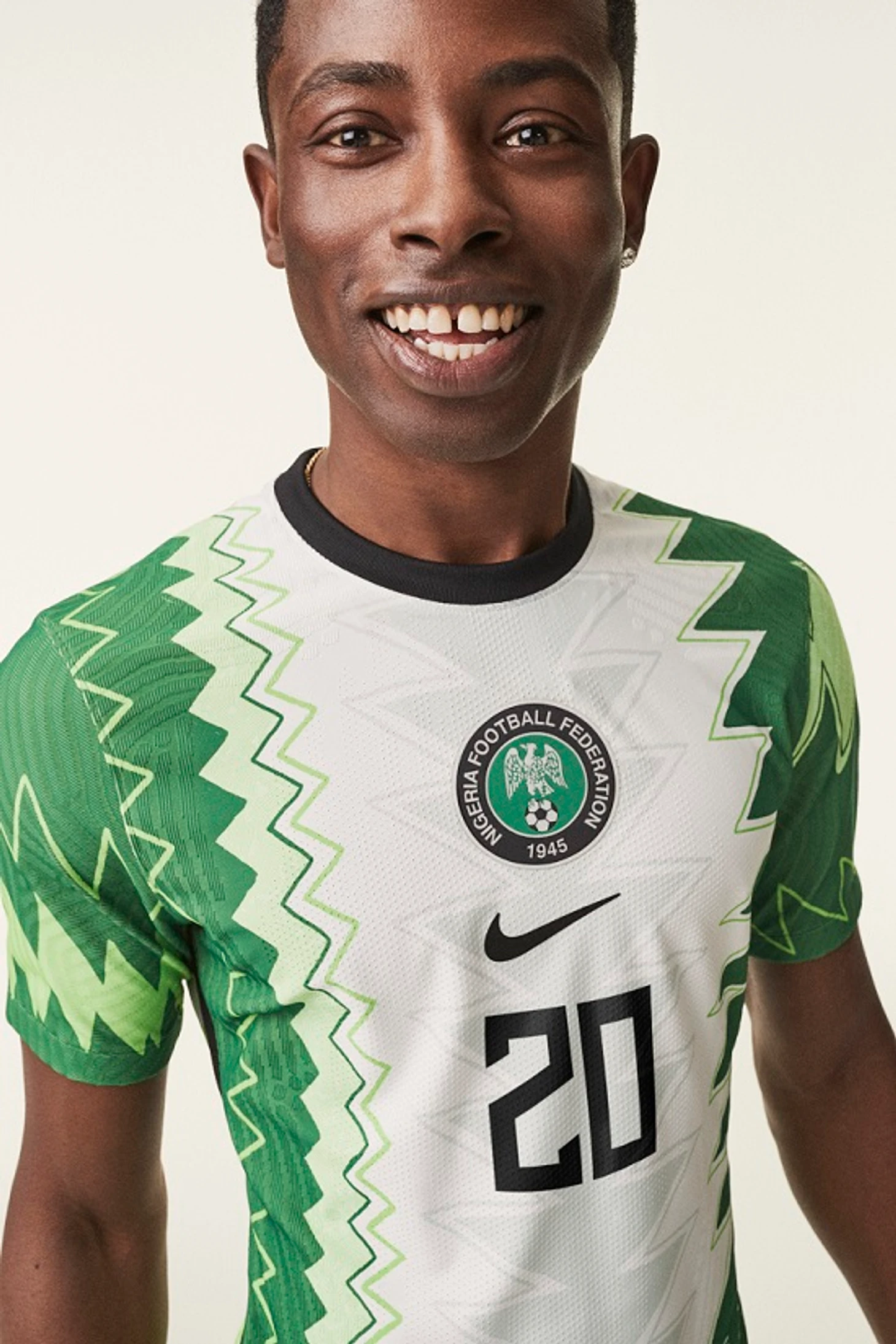 Nike представил в Нью-Йорке новую домашнюю и выездную форму для сборной Нигерии. Дизайн домашнего комплекта очень смелый – нарисован от руки и отсылает к традиционной нигерийской одежде, которая называется агбада. На внутренней стороне воротника и задней части носков написано Naija (самоназвание Нигерии).