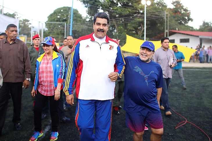Но гораздо более близкие отношения у Мадуро с Марадоной. Они часто встречаются на публике и постоянно демонстрируют взаимное восхищение.