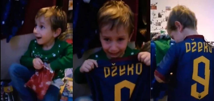 Лучшая реакция на рождественский подарок: 6-летний фанат «Ромы» разрыдался от счастья, когда ему подарили футболку Джеко