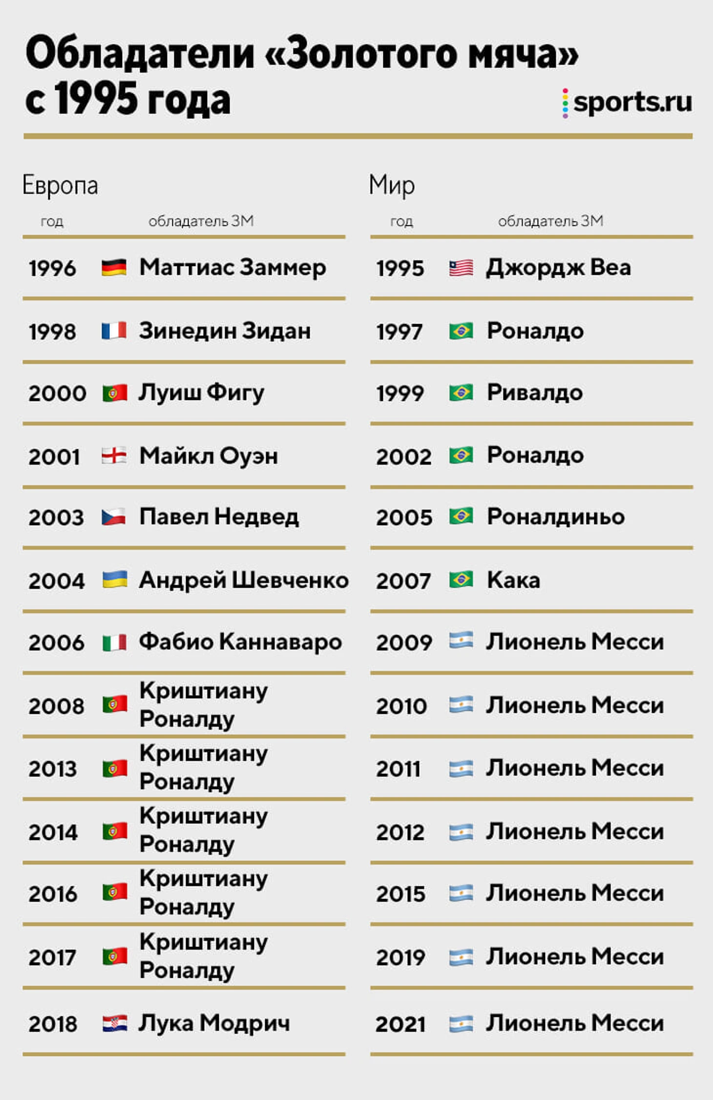 Сразу после Ромарио, в 1995-м, France Football позволил номинироваться неевропейцам, которые играют в европейских клубах. И сразу же награду забрал либериец из «Милана» Джордж Веа. А после него еще 11 «Золотых мячей» отправились в Бразилию и Аргентину.