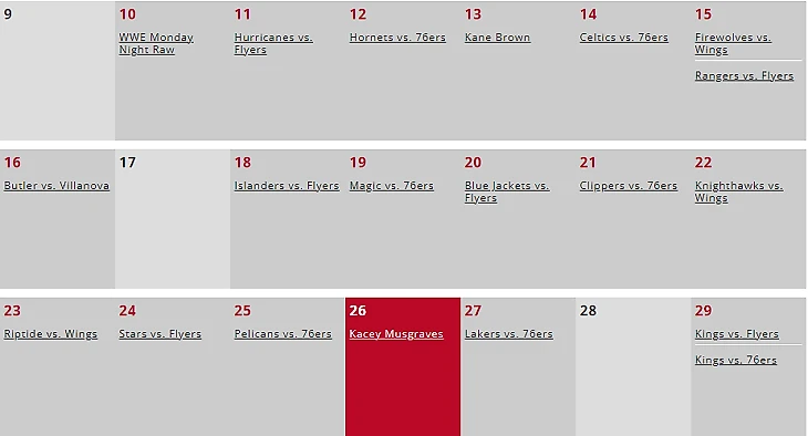 Судя по календарю арены, в январе «Уэллс Фарго Центр» принял 31 крупное мероприятие. Плюс еще один матч «Флайерз» перенесли из-за коронавируса. Особенно забитыми получились 20 дней с 10-го по 29 января. Всего два свободных окна, в некоторые дни по несколько событий: