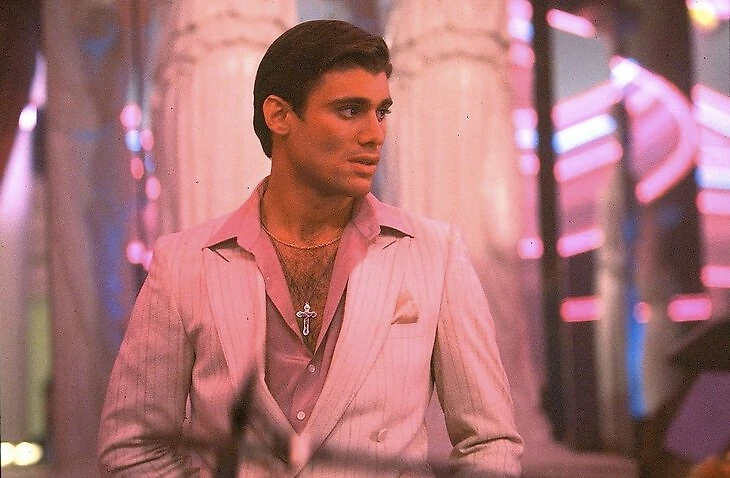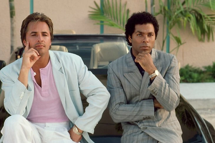 Похожие тропические цвета активно использовались и в других знаковых работах, ассоциирующихся с Майами. Тони Монтана в «Лицо со шрамом» носил ярко-красную гавайскую рубашку, но розовый окружал его повсюду.