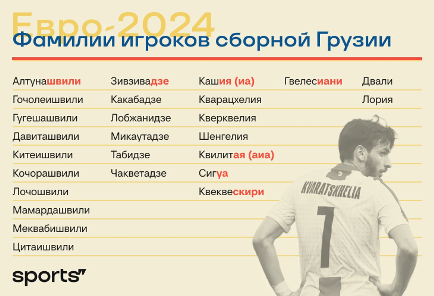 Среди приехавших на Евро мы пока не упомянули лишь Лашу Двали. Исправляемся: эта фамилия известна с XI века и, вероятно, отсылает к двалам – этнографической группе грузин и осетин.