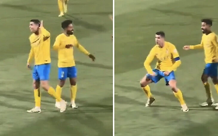 Да, это вновь «Аль-Хилаль» и вновь поражение 0:2. Несмотря на товарищеский статус Riyadh Season Cup, Роналду переполняли эмоции и после матча он вытворял неприличное: поднял прилетевший в него шарф «Аль-Хилаля», засунул в шорты и несколько секунд имитировал вытирающие движения.