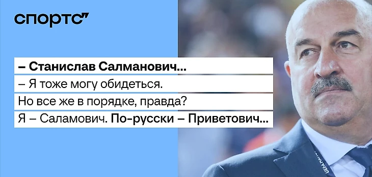 После того как на пресс-конференциях наладили синхронный перевод, стендапам Черчесова уже ничего не мешало. Например, вот так он отшутился, когда его неправильно назвали по отчеству.