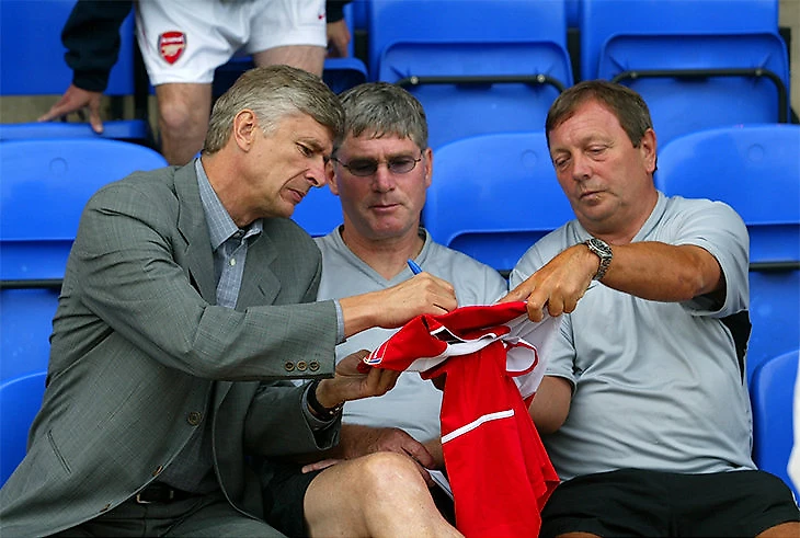 Вик Эйкерс (справа) с Арсеном Венгером и Пэтом Райсом