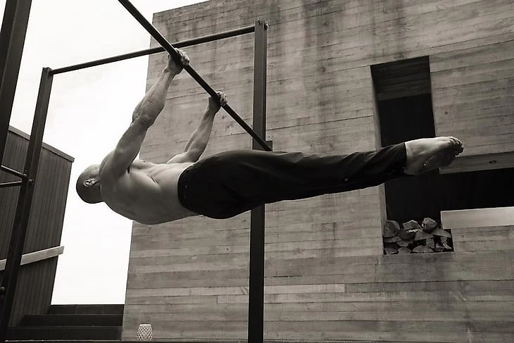 Тренировка: силовая гимнастика на паралетсах, подъем гирь, гимнастика на кольцах, становая тяга.