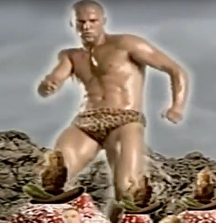 В таком же психоделичном видео Comin’ on (1994) группы The Shamen обнаженный и обмазанный маслом Стетхем задорно танцует под музыку.