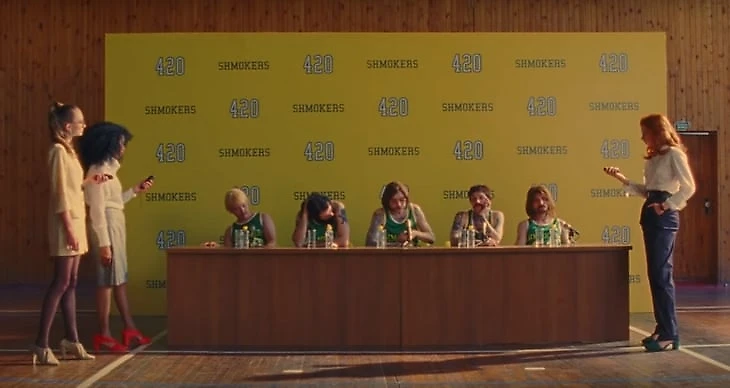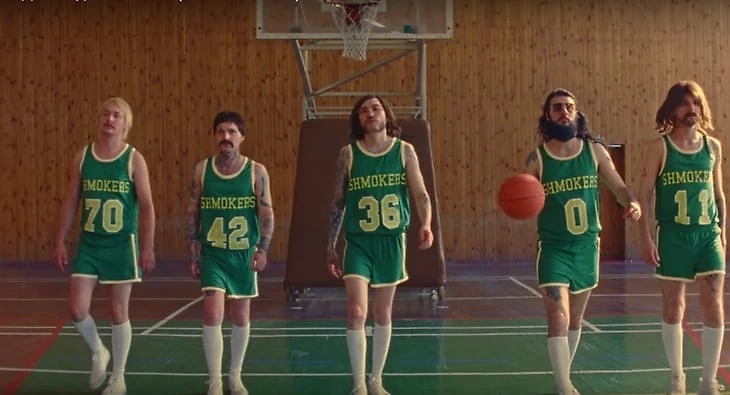 На одном из первых кадров Скриптонит и его музыканты в баскетбольной форме идут по спортивному залу. На груди – название команды – shmokers – и число 420. Внимание к деталям: с мячом идет нулевой номер, под которым часто выступают разыгрывающие.