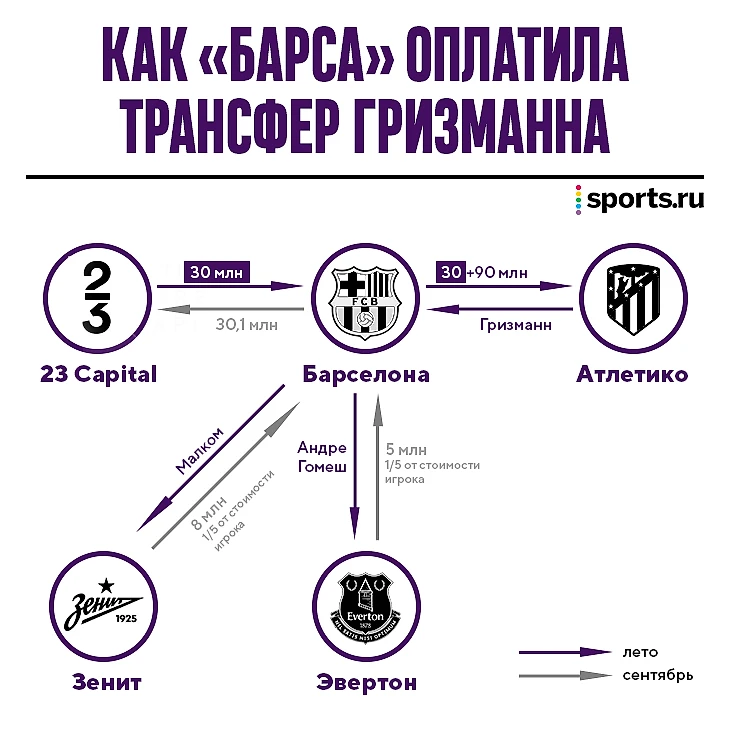 Именно этот заем краткосрочный – «Барса» гарантировала возвращение в начале сентября, когда поступят деньги за Малкома и Андре Гомеша (платежи разбиты траншами на несколько лет; неизвестно точно, сколько за каждого, но обычно сумму трансфера делят на число лет в контракте: если руководствоваться этим, то за Малкома прилетает примерно 8 млн, за Гомеша – 5).