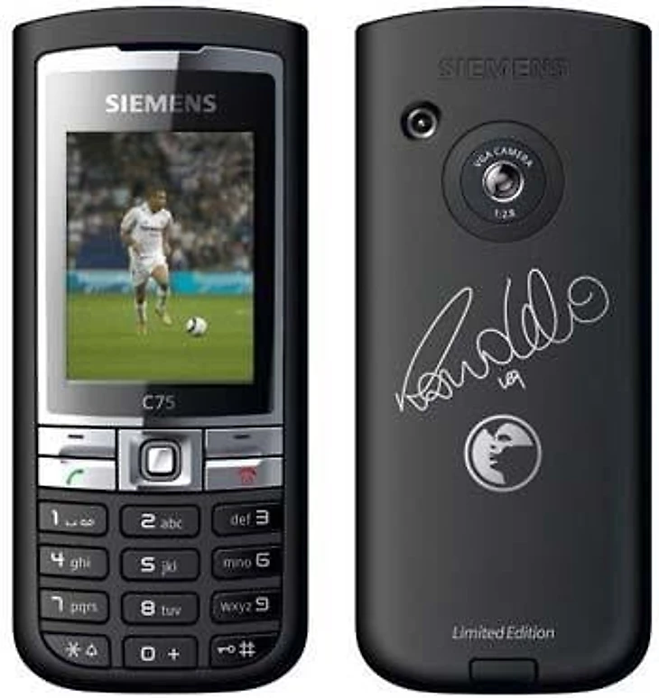 Чуть позже вышла модель Siemens C75 Ronaldo Limited Edition. Внутри заставки и картинки с бразильцем, а на обратной стороне приятный сюрприз – автограф Рона.