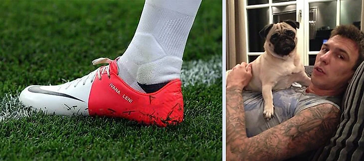 Мимими два: как и многие игроки, Марио наносит на бутсы имена любимых. И если на правой бутсе у него классика – имя жены, – то левую форвард подписал в честь мопса.