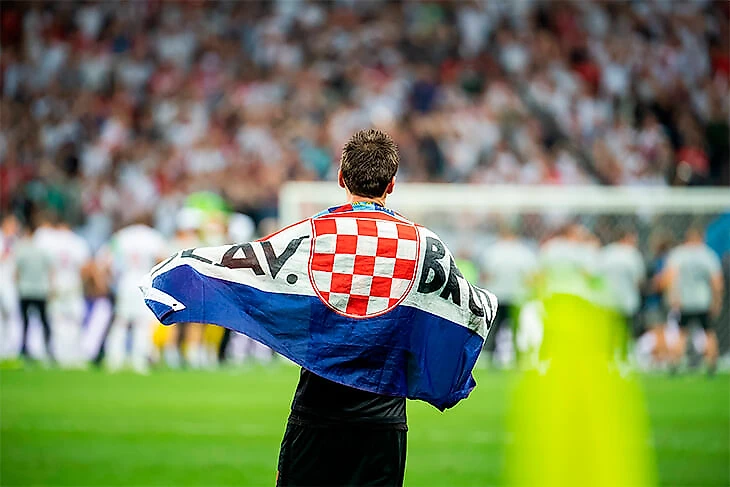 На поле Манджукич выходил в бутсах с надписью Славонски-Брод (Ленни и Иване пришлось подвинуться), а после полфинала разгуливал по полю «Лужников» с необычной версией хорватского флага.