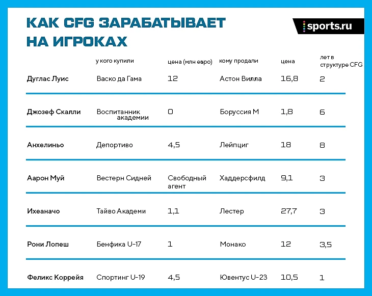 CFG зарабатывает на игроках. Удачный трансфер может окупить покупку целого клуба