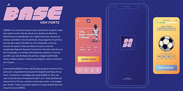 Винисиус уже инвестировал в проект почти два миллиона из личных средств. С осени 2021-го Base действует в бывшей школе Винисиуса в Рио, а со следующего года приложение хотят внедрить в еще несколько школ. Если у ученика нет телефона, ему бесплатно выдают смартфон с установленным приложением. Вот мнение восьмилетней Бруны Матос, которая тестировала Base. «Мне нравится приложение, – рассказала школьница The Guardian. – Я чувствую, что с Base учиться легче, чем по книгам. Надеюсь, у меня будет возможность использовать его каждый день».