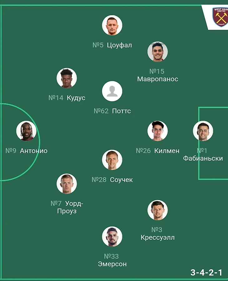 В атаке тоже не видно конструктива – основой являются длинные передачи Уорд-Проуза или кого-то из центральных защитников (Килиан или Крессуэлл) во фланги, далее шли быстрые прорывы или скидки/навесы в центр, в другом сценарии передачи шли прямиком на форварда, а дальше уже как получится – борьба за подборы и прессинг в случае потери. Раньше основной схемой ВХЮ были классические 4-3-3, в которых как раз блистали крайние игроки – Кудус, Бенрахма, Боуэн, Цоуфал и Эмерсон. Кстати, правый защитник Цоуфал стал лучшим ассистентом команды в прошлом сезоне – задумайтесь. Переход на более оборонительную схему – скорее всего, попытка реанимировать команду после ужасного в плане обороны прошлого сезона, как уже говорили – худшего по количеству пропущенных. Огромное количество моментов создавал даже условный Лутон.