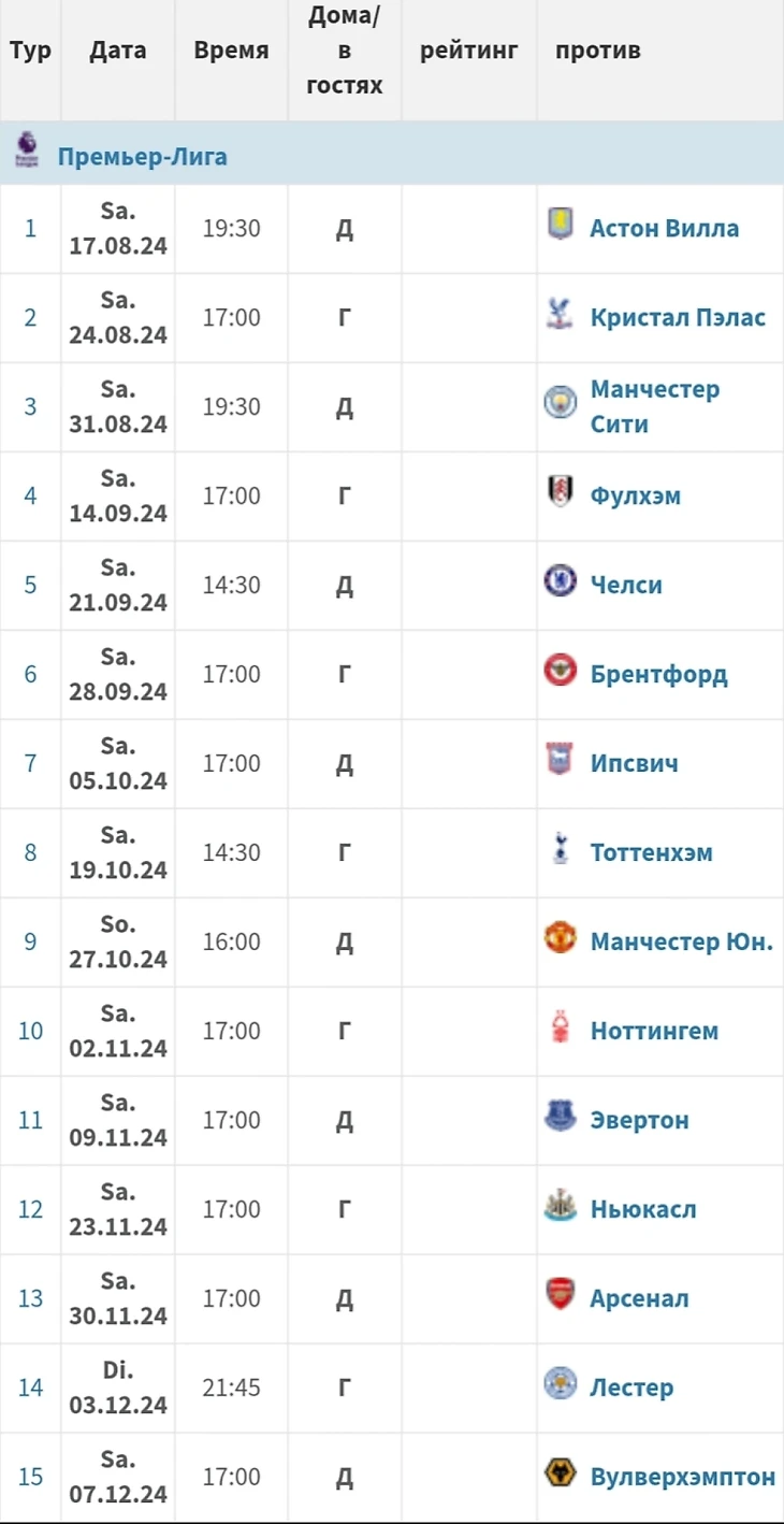 Ну и снова надежда на вратарские перфомансы, Ареоля за счёт «гениальной» игры своих защитников вошёл во многие топы вратарских метрик, 47 сейвов – топ-4 в АПЛ, вместе с Алиссоном в топе по проценту сейвов (более 70%). Почему это важно? С учётом описанных выше проблем и стартового календаря, чуть ниже расписание первых 15 туров, надеяться на надёжную оборону не приходится. Если останется такой же проблемный прессинг, то количество ударов с высоким XG будет приличным. Плюс обратите внимание на соперников. Из первых 6 матчей, более менее лёгкими можно назвать только 2. Для набора очков нужна будет супер-надежная игра голкиперов. Отметим, что почти 40 летний Фабьянский тоже держит форму и может подстраховать в случае чего, это плюс.