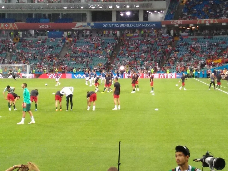 Забитый под завязку стадион поочередно исполняет две песни: сначала португальцы заряжают свою, потом испанцы. Команды выходят, звучат гимны. А я во сне. До сих пор не понимаю, что это всё правда. Любимая сборная и Криштиану Роналду вот-вот начнут Пиренейское дерби, которое предвкушалось давным-давно.