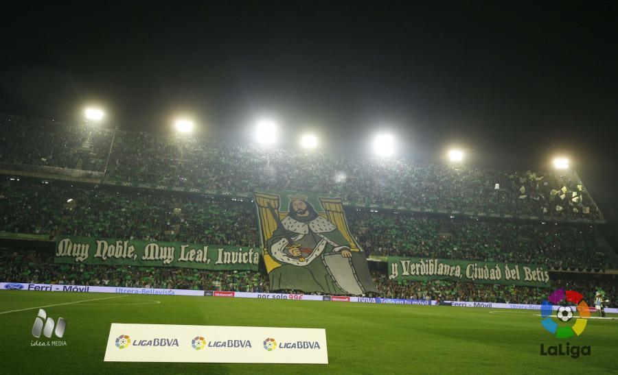 Минуты ожидания матча становятся настолько томными, что не знаешь, куда себя деть. Матч должен начаться в 20:30 по местному времени – это, пожалуй, лучшее время для проведения дерби. За несколько минут до начала зрелища команды выходят на поле. Перед ними предстаёт «Бенито Вильямарин», как и полагается в сплошь белых и зелёных цветах. На центральной трибуне расположен баннер с царём Фердинандом III, а текст – отсылка к девизу города: «Очень благородный, очень лояльный, непревзойдённый и Зелёно-белый, город «Бетиса» (оригинальный текст девиза звучит так: «MUY NOBLE, MUY LEAL, MUY HEROICA, INVICTA Y MARIANA»).