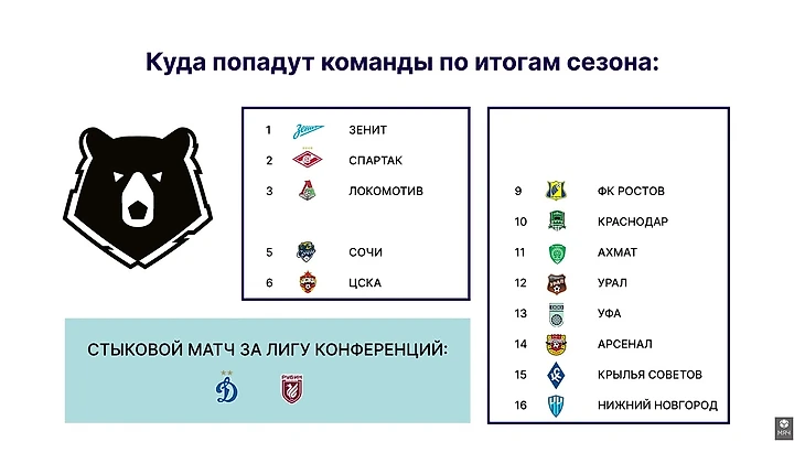 Второй плюс нижней части сетки – команды будут до последнего иметь мотивацию пробиться в еврокубки, но при этом и вылететь станет проще. Интрига сохранится до последних туров, а значит будет выше спрос на игры! Во второй части сезона очки делятся пополам, так что за счет нескольких удачных матчей можно подняться на 7-8 место и попасть в плей-офф для попадания в ЛК. Ну или же вылететь. Это все должно повысить интерес даже к турниру команд нижней части.
