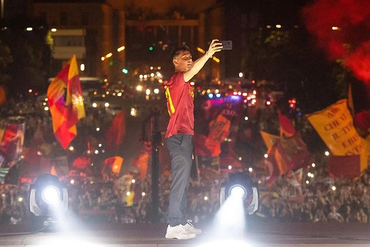 На фасад Дворца вывели световое шоу. Там была эмблема «Ромы» и 21-й номер, который взял в команде Пауло. В конце шоу – портрет новичка. А потом появился и сам герой вечера, который был в полном шоке. Игрок произнес речь, потом показал свой фирменный жест и сделал селфи на фоне фанатов. А когда толпа запела гимн клуба, аргентинец просто присел на ступеньки и офигевал. Просто королевский прием, как будто Рим встречал нового императора!