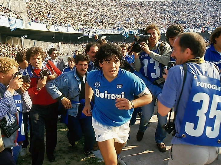 На стадионе «Сан-Паоло» собралось 70 000 болельщиков. Повсюду пестрели восхваляющие аргентинца баннеры, ведь с самого начала его приняли в бедном южном городе за своего парня. Фанаты не могли дождаться представления и на первой  пресс-конференции скандировали имя игрока через вентиляционную решетку. Такого праздника в городе не было очень долго! Марадона был в брюках, они стесняли его движения, но Диего набил мяч несколько раз, а потом запулил его в небо. В «Наполи» начался лучший период клубной истории, как его называют – Эра Марадоны.