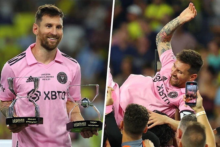 На прошлой неделе мы хвалили Лионеля за крутое начало карьеры в Америке, а теперь он вообще взял трофей. В финале Кубка лиг с «Нэшвиллом» аргентинец сначала положил фирменный гол из-за штрафной, потом реализовал попытку в серии пенальти и по итогу выиграл свой уже 44 титул в карьере, став лучшим бомбардиром и футболистом турнира.