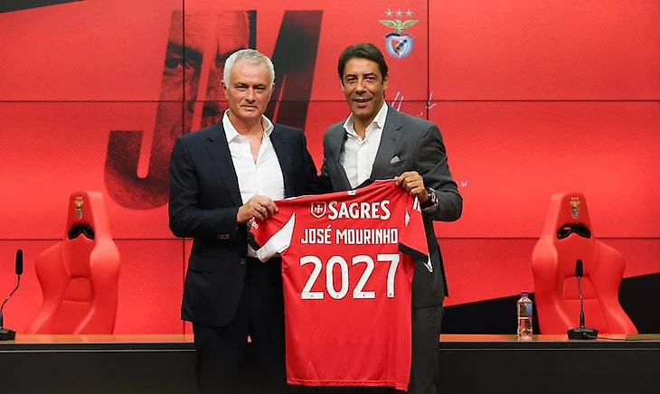После скандального ухода из «Фенербахче» Жозе недолго оставался без работы. И неожиданно возглавил клуб, который приложил руку к его увольнению. Последней каплей терпения боссов «Фенера» стал вылет клуба из стыков ЛЧ от «Бенфики». Так вот, сама «Бенфика» из-за поражения в еврокубках на неделе уволила наставника Бруну Лаже и неожиданно позвала главным Моура. Жозе долго не думал и согласился вернуться в клуб, в котором 25 лет назад начинал карьеру главного тренера. Свою работу в Бенфике особенный начал с пафосных и немного провокационных слов: «Ни один из гигантских клубов, что я тренировал, не вызывал у меня такого ощущения чести, ответственности и мотивации, как «Бенфика». Я буду жить ей».