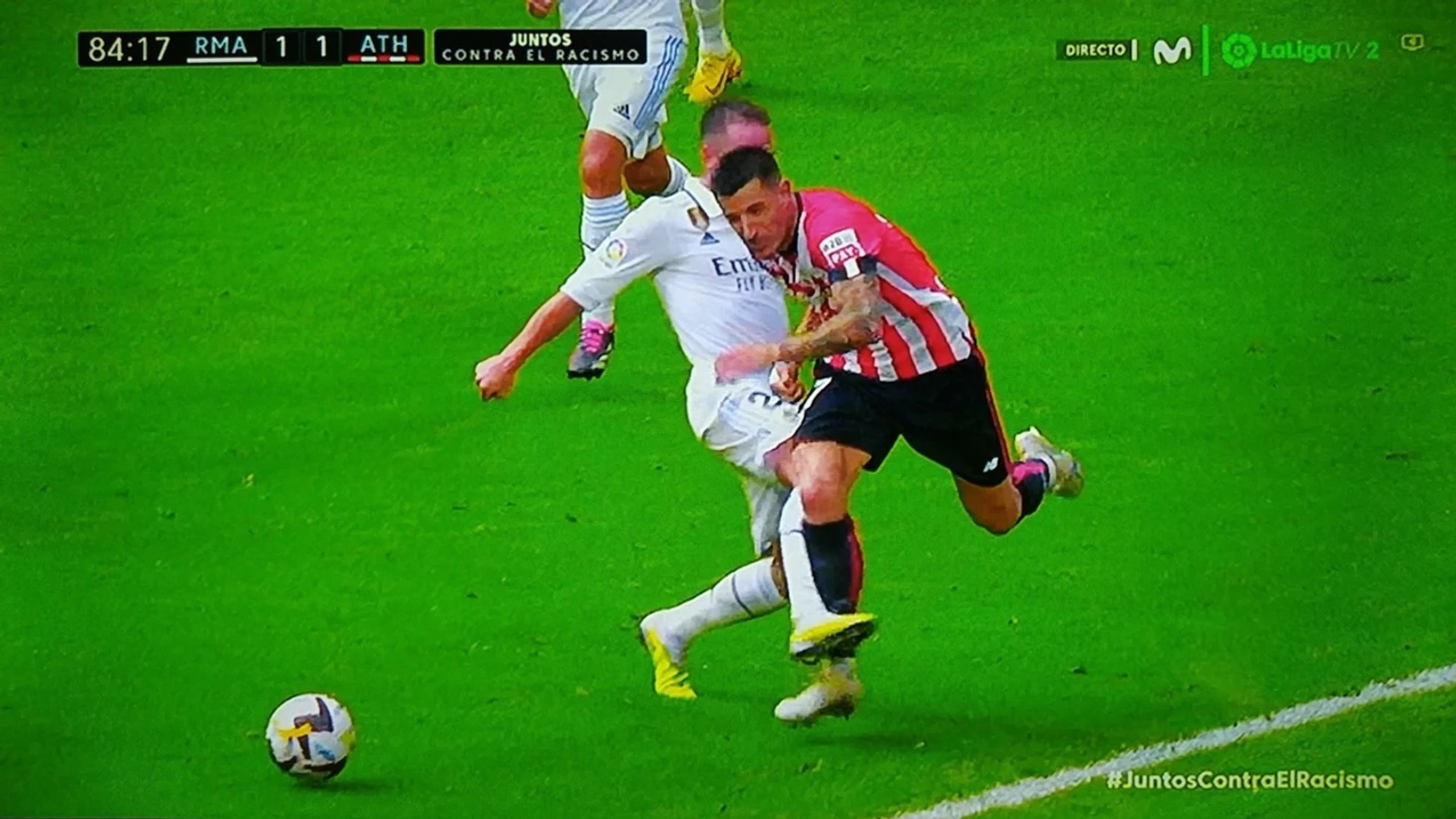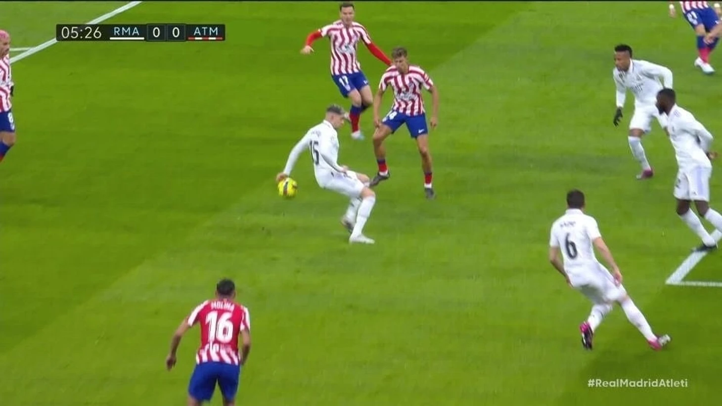 Последняя победа в ЛЧ, когда Вальверде делал прострел в штрафную площадь мяч задел ногу Бензема, находящегося в оффсайде, после чего Винисиус забивает гол.