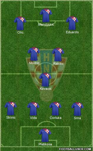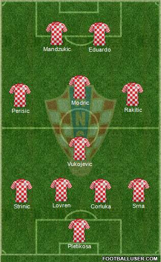 Стипе Плетикоса, Даниэл Субашич, Дарио Срна, Ведран Чорлука, Даниэл Праньич, Иван Стринич, Деян Ловрен, Нико Кранчар, Лука Модрич, Иван Ракитич, Ивица Олич, Эдуардо, Марио Манджукич