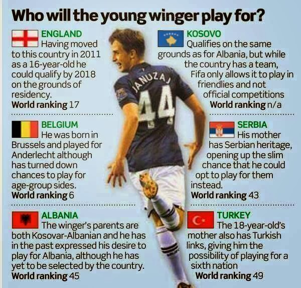 Есть и молодые игроки, принадлежащие клубам из Германии, Италии и Англии. Многие футболисты родом из Косова играют в других сборных, однако выступать за сборную родины не имеют возможности. Однако сборная этой страны очень активно включилась в футбольную жизнь – так, она претендовала на Аднана Янузая, который в итоге выбрал Бельгию.