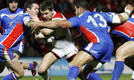 В первом тайме англичане испытывали ощутимые проблемы с созиданием и слишком часто теряли мяч. Показательно, что как минимум трижды за игру они получали пенальти за то, что маркеры стояли не в проекции (маленький ликбез – на розыгрыше плей-зе-болл маркеры должны стоять четко один за другим, лицо-в-затылок, а если нет, то атакующий просто идет в них, дает себя захватить и судья ставит пенальти за markers not square). В то время как мощная и сыгранная французская команда (большинство игроков из одного клуба) грамотно защищалась и очень уверенно действовала в атаке. Их вингеры Димитри Пело и Винсен Дюпор не только обыгрывали на ногах, но и шли в контакт так, словно играют в первой линии. Словом, игра сборной Франции располагала к себе и вызывала симпатии.