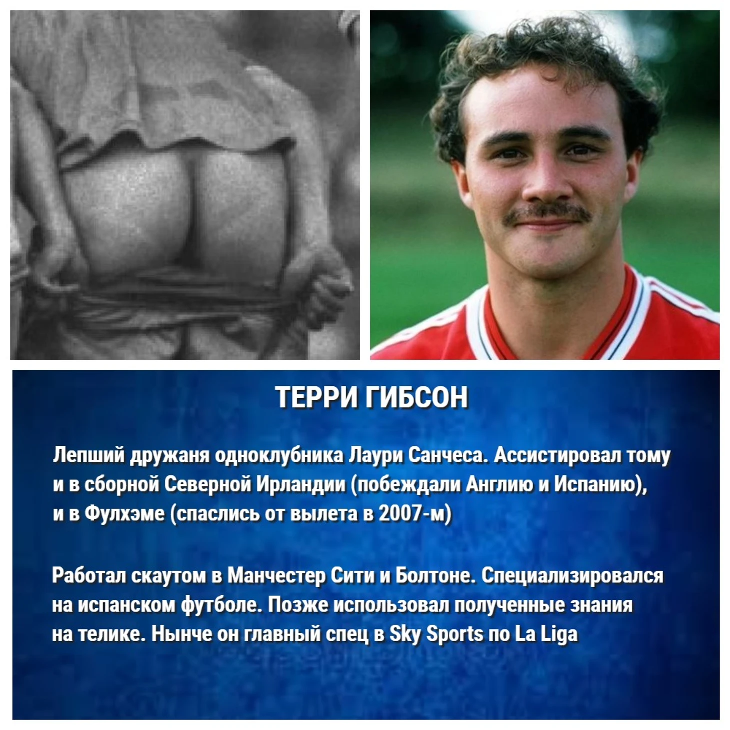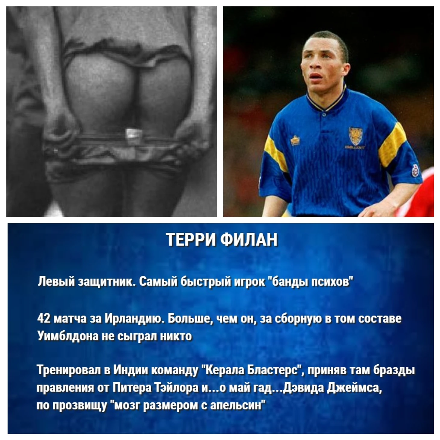 Ребус второй. За «Уимблдон» вместо именинника первый тайм провел основной голкипер команды Дейв Бизант. Играл он в поле под номером 9. На видео Дейв – в самом начале с крышкой от кубка и чуть позже (0:45) дает шуточного леща сопернику. Это его худосочная ягодица – третья по счету на легендарной фотографии.