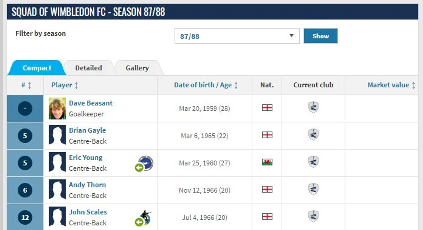 Так мы узнаем, что в том сезоне у «Уимблдона» было целых два игрока под номером 5. Второй из них – Брайан Гейл, обладатель черной шевелюры и косой сажени в плечах. Бинго!