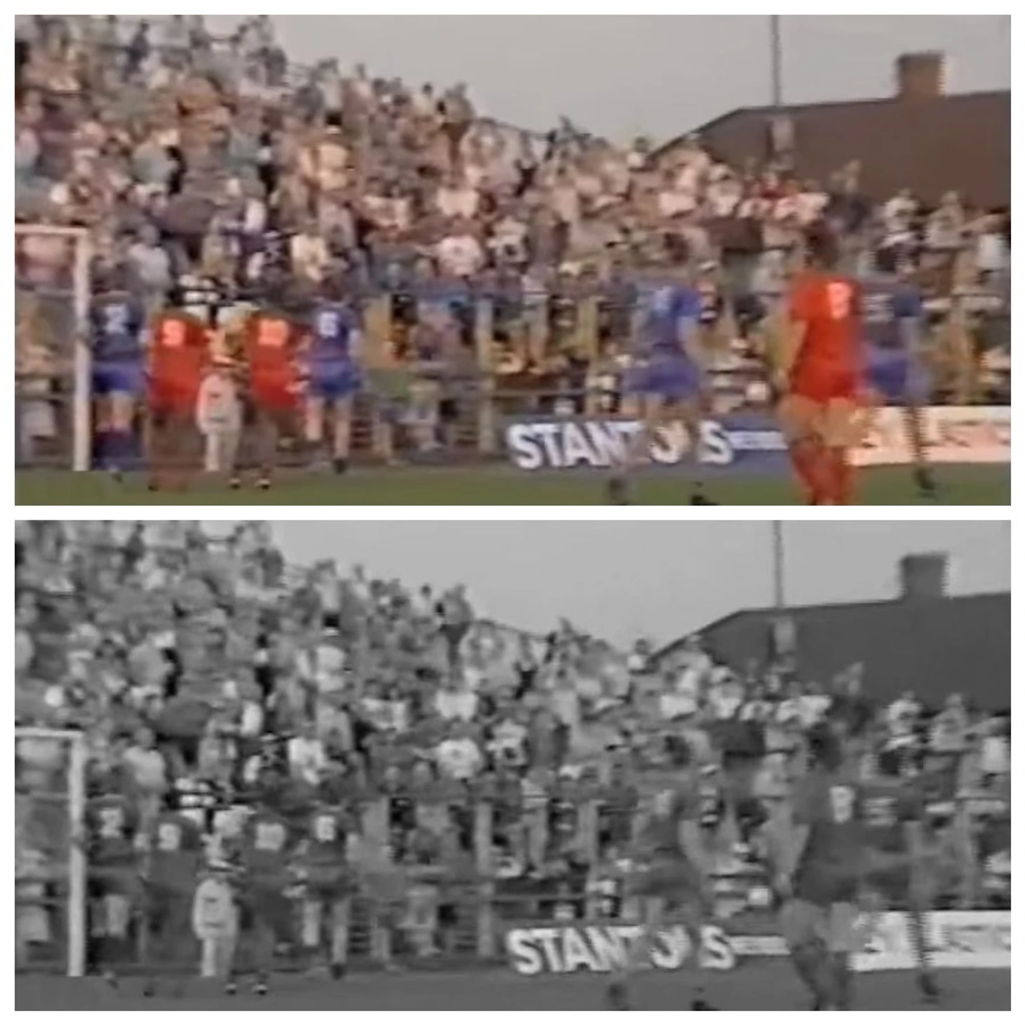 Есть аргументированное предположение, что в перформансе не участвовал вратарь Саймон Трейси. В нашем матче он подменял в рамке Бизанта. На фото нет никого похожего, ни по шевелюре, ни по вратарской амуниции.
