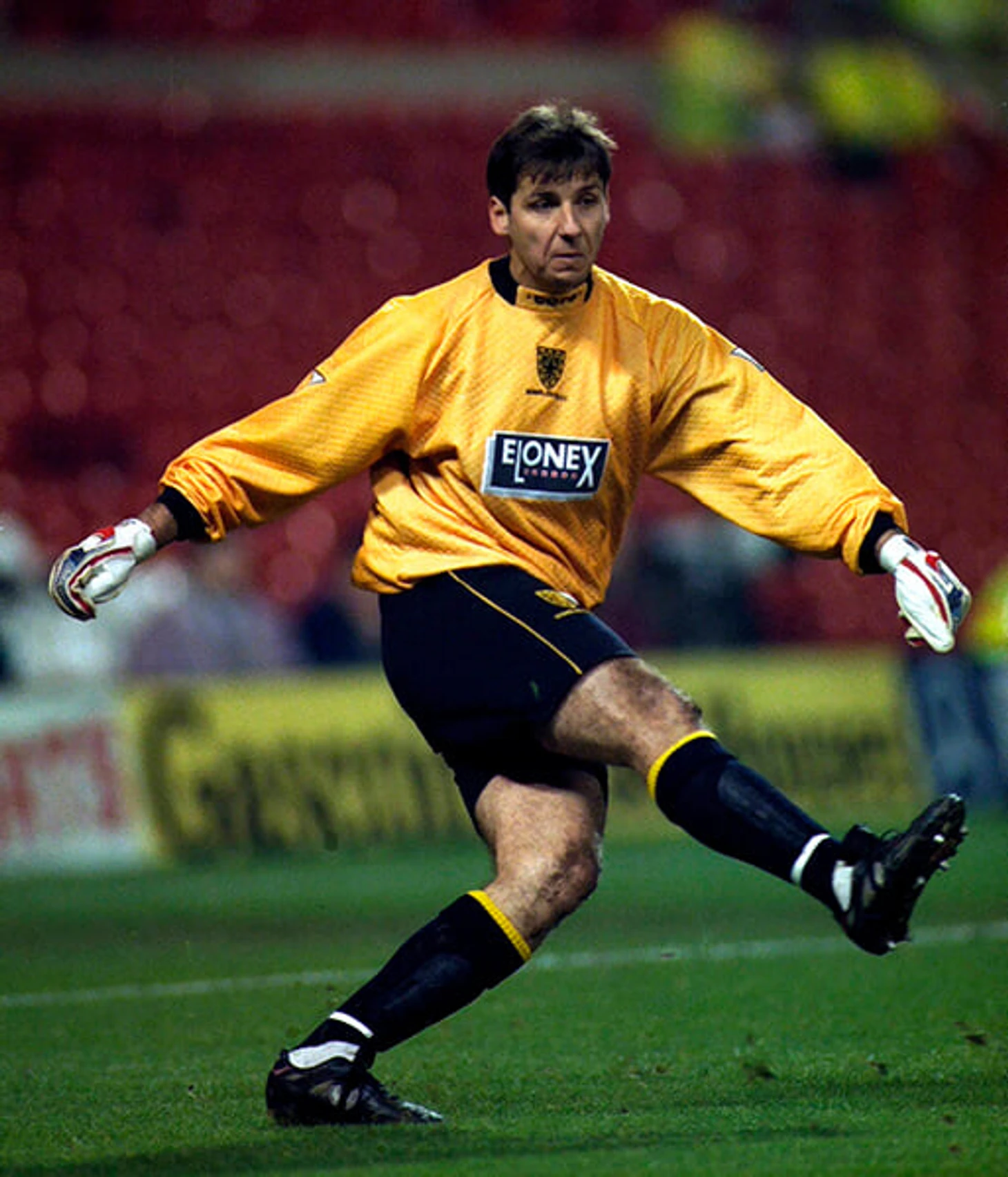 Ищем – и находим. На еще одном легендарном фото Джонс выполняет хореографическую поддержку тренера Гоулда сразу же после победы над Ливерпулем в Кубке.