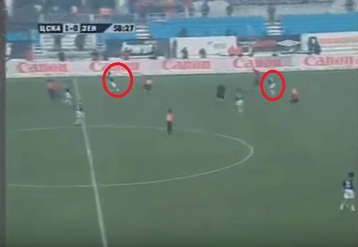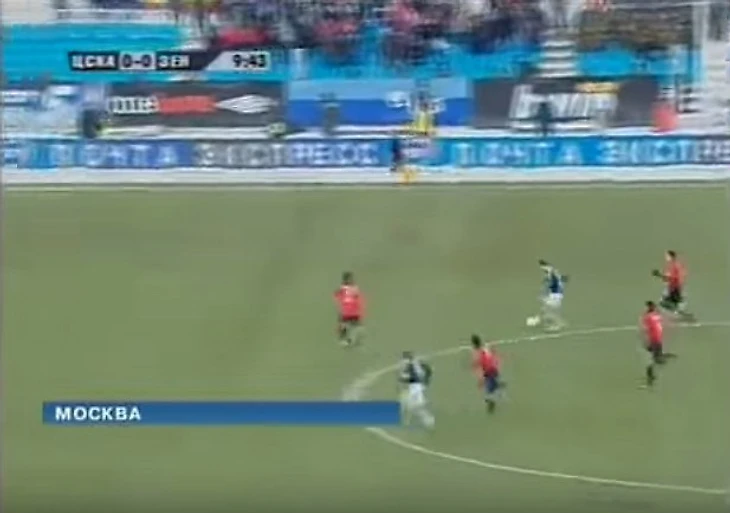 10 минута матча. Аршавин получает мяч, убегает от защитников ЦСКА и забивает гол в ворота Игоря Акинфеева. Но гол не засчитан из-за офсайда, который зафиксировал один из лайнсменов. Стоп кадр эпизода.У Аршавина в момент передачи двухметровая фора, но лайнсмен, занимающий в этот момент идеальную позицию для определения эпизода, фиксирует офсайда.