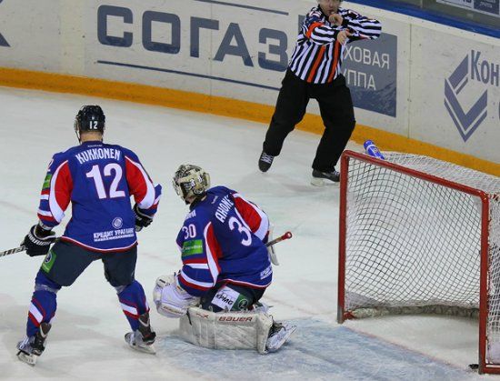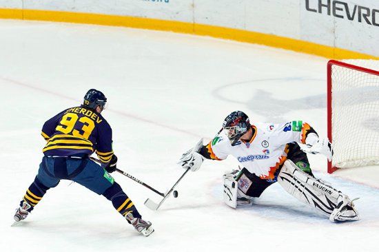Этот матч - десятая победа, она же заключительная, в нашей рекордной серии. И пусть вас не смущает небольшой счёт - матч был настолько живым и бодрым, что обе команды наиграли на гораздо большее количество заброшенных шайб (броски 37-41 (!)). Но - где-то кому-то не повезло, а где-то кто-то натыкался на непробиваемых Веханена и Барулина... А победу жёлто-синим принёс Дмитрий Уппер, единственный реализовавший буллит в серии после матча.