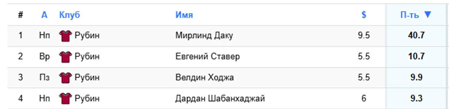 Матч выдался хорошим. Многие предрекали низовую игру и сушняк с 1-2 голами в матче, однако Крылья выдали великолепный перфоманс, и в частности новая звёздочка Вадим Раков (Я вам втюхивал его все три эти тура), который сделал 2+1. Ростов не был плох, даже весь хорош, особенно в первом тайме, но как и в прошлых матчах, не хватало завершения. Однако обладатели атаки Ростова не остались обижены, Голенков таки забил с паса Мохеби. Я предупреждал перед туром, что этот матч будет краеугольным камнем тура, от него будет много зависеть для ваших пиков на дистанцию и нужно было выбрать правильную сторону. Пикеры Голенкова остались +- довольными, но не иметь Ракова на этот тур был катастрофической ошибкой. Также порадовали Божин и Печенин, один забил гол, второй отдал пас.