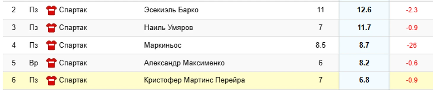 Барко 4фо, Умяров 4фо, Максименко 5фо, Мартинс 4фо.