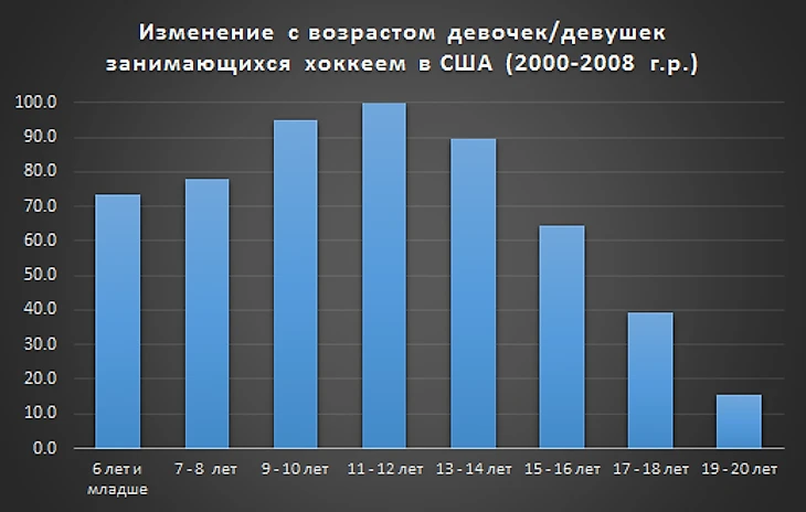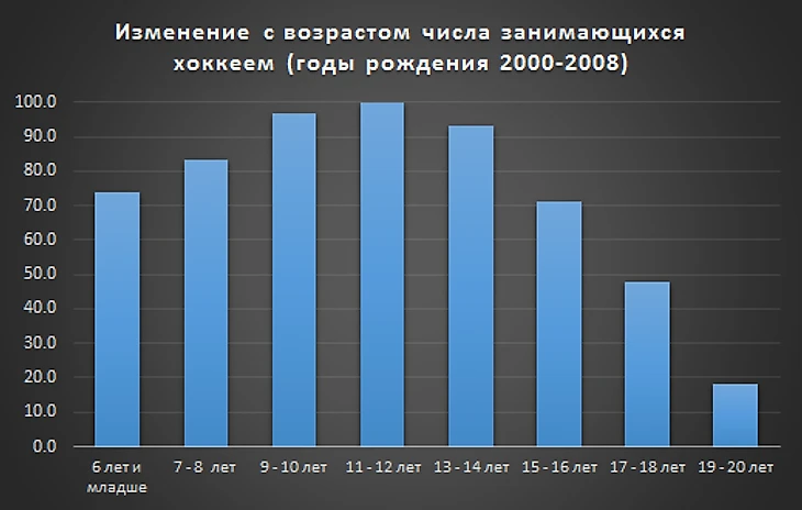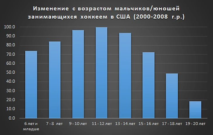 Больше половины детей бросают хоккей, а во взрослом возрасте продолжают играть не более пятой части занимавшихся в детстве.