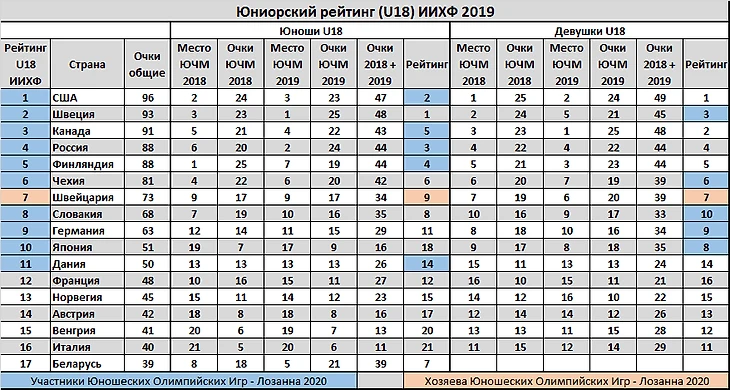 Подробно разобрав рейтинг ИИХФ 2019 U18 получаем следующее: