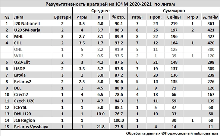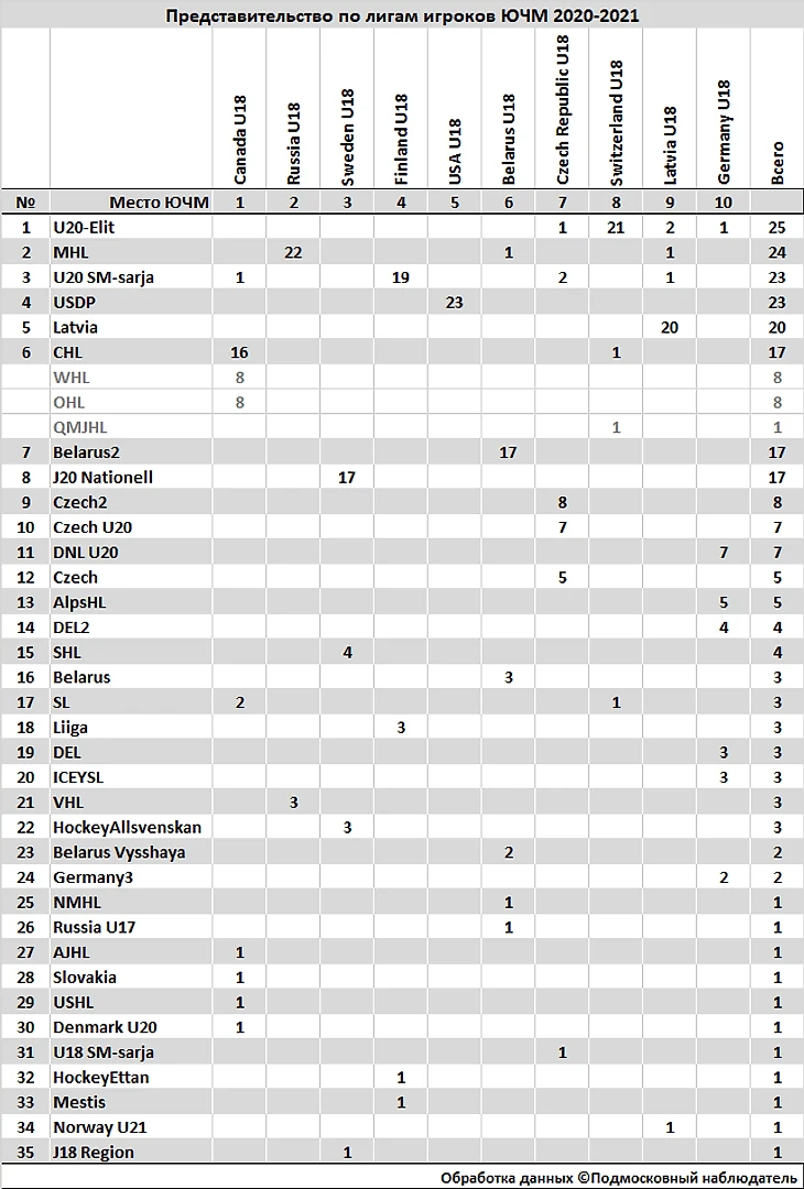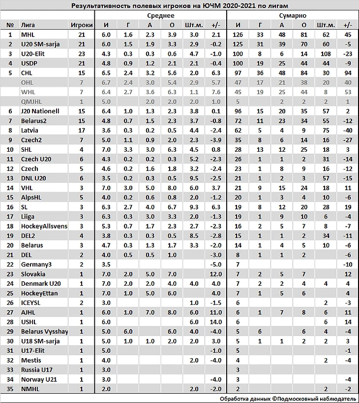 Таким образом, несмотря на сорванный сезон, сильнейшей юниорской лигой остается канадская CHL, вторая по уровню российская МХЛ.