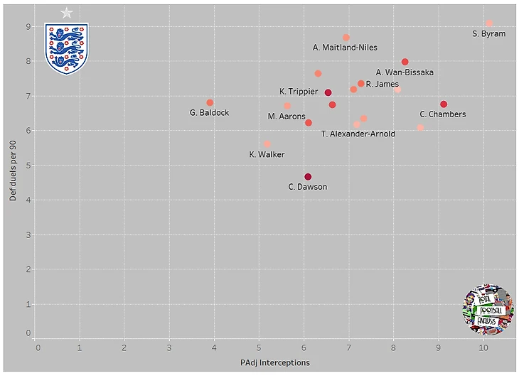 С чисто оборонительной точки зрения может показаться, что Уан-Биссака - лучший вариант для Саутгейта, поскольку защитник «Манчестер Юнайтед» успешнее, чем его непосредственные соперники по всем трем показателям. Рис Джеймс тоже неплохо себя зарекомендовал и стоит ждать, что как только он приобретет достаточно опыта – это будет один из главных претендентов из всего этого списка.