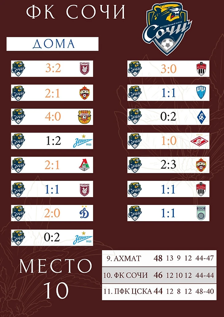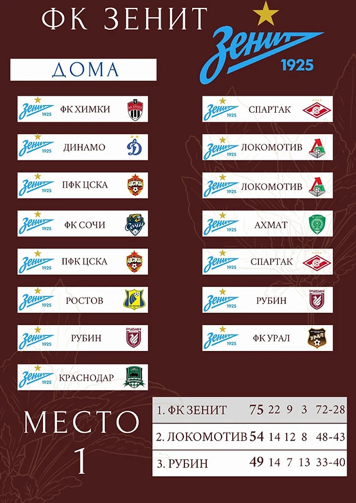 Прямо сейчас же мы опубликуем данные по календарю одного из популярных клубов страны, и общую финальную турнирную таблицу чемпионата.