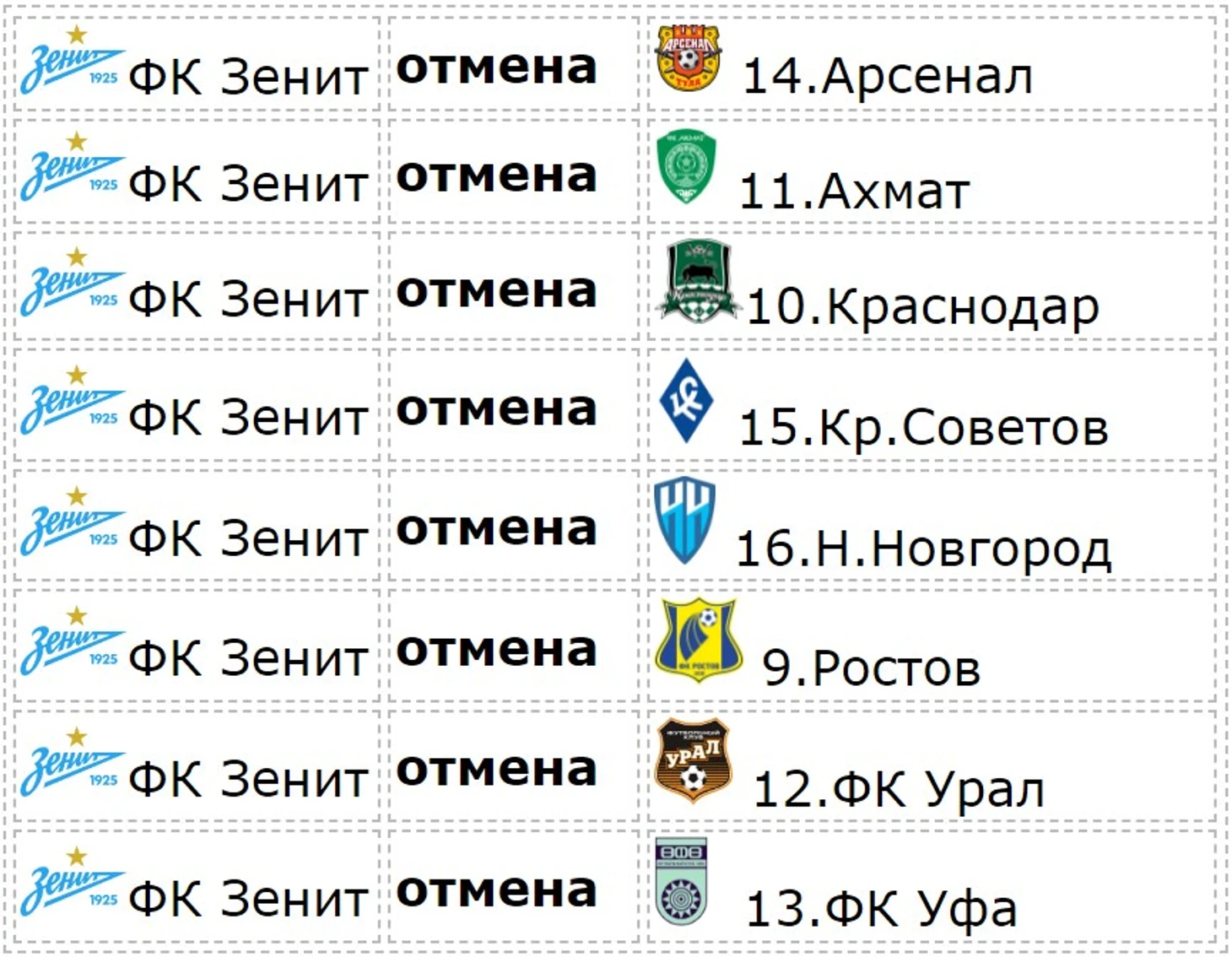 взамен отменённых матчей команды ТОП-8 проводят круг матчей между собой (равно команды НИЗ-8 тоже взамен играют дополнительный круг между собой)