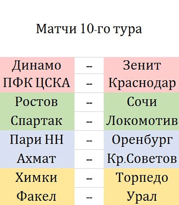 Не загромождая статью проектно-регламентными расчётами, матчи 10 тура проекта: