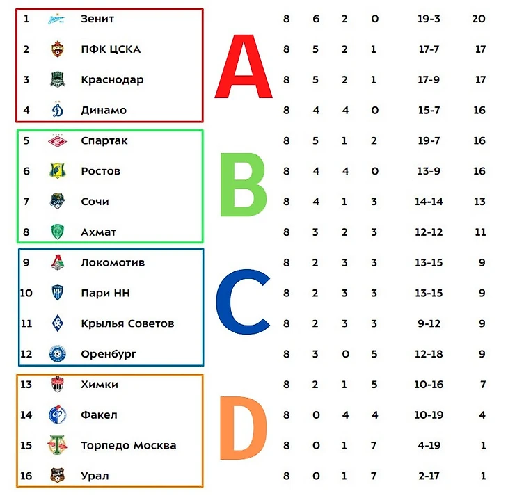 Это значит, результаты этих матчей должны быть внесены в актуальную таблицу РПЛ для точной симуляции.